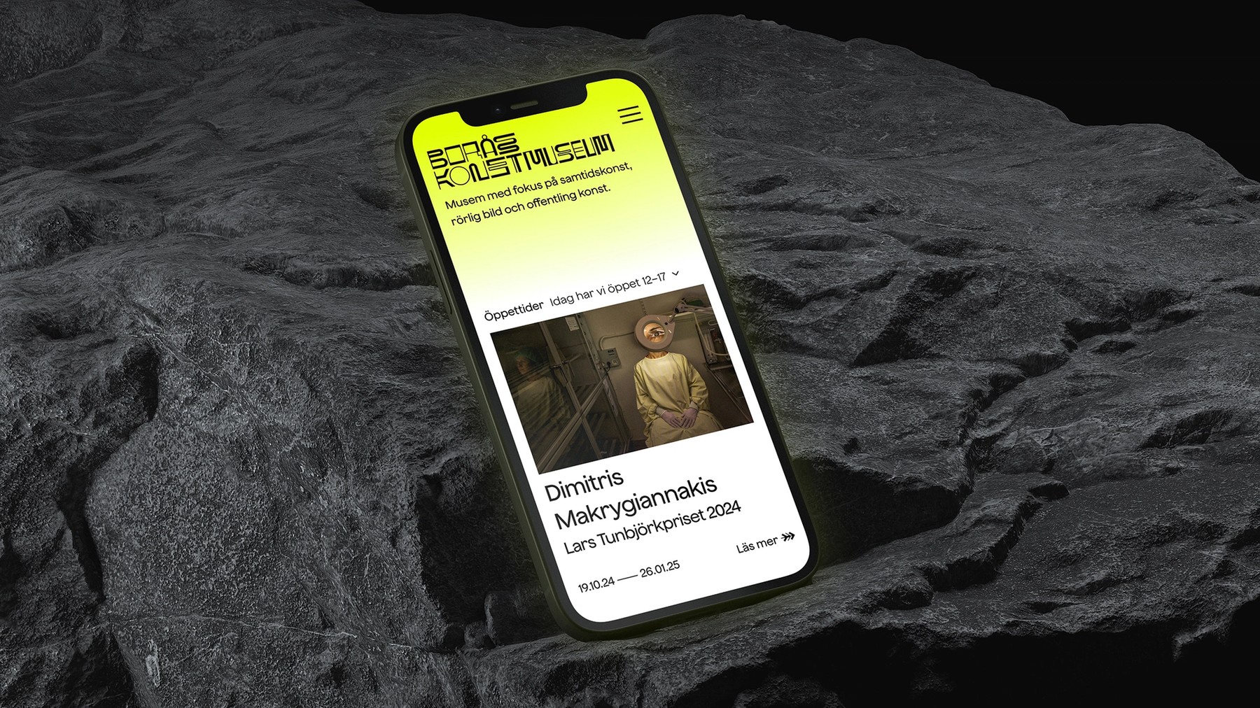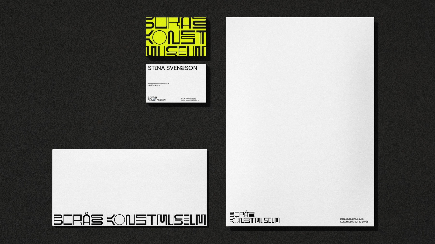 The flourescent colour stands out also on a rainy day. And the typographic glitch adds the element of surprise while challenging the convention of what readable letters should look like. It’s a visual identity that stands out, and a brand that pushes Borås Art Museum to the next level.